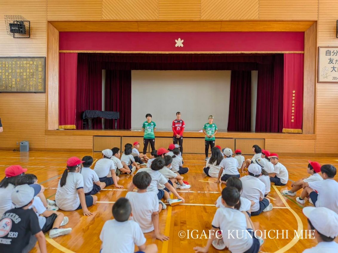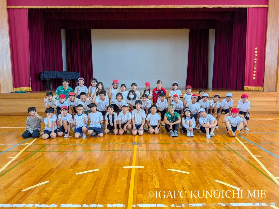 伊賀FCくノ一三重は、10月7日(火曜日)、地域おこし協力隊の活動として伊賀市文化都市協会とのコラボで実施されました「笑顔お届け隊」として伊賀市内の大山田小学校へ訪問致しました。