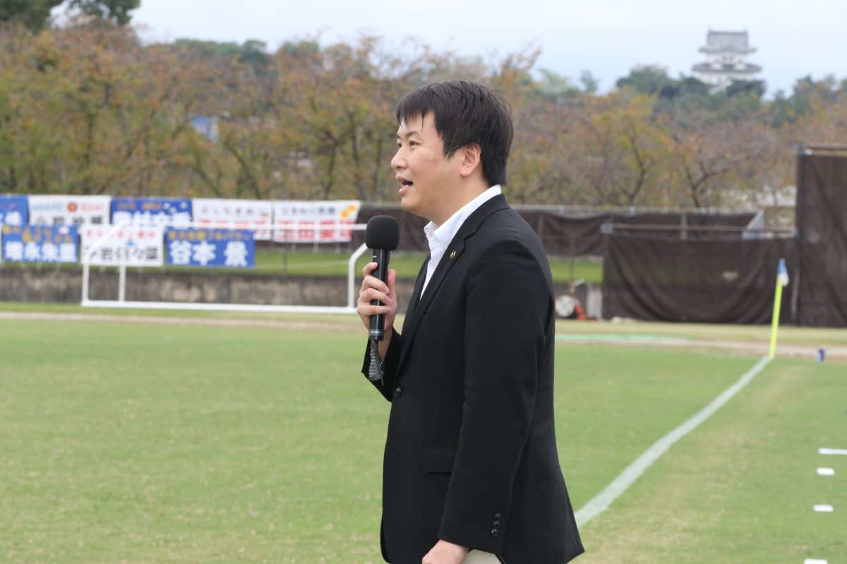 キックオフ前には伊賀市を代表して 伊賀市長 稲森稔尚様より歓迎のご挨拶を頂きました。お忙しいところありがとうございました。