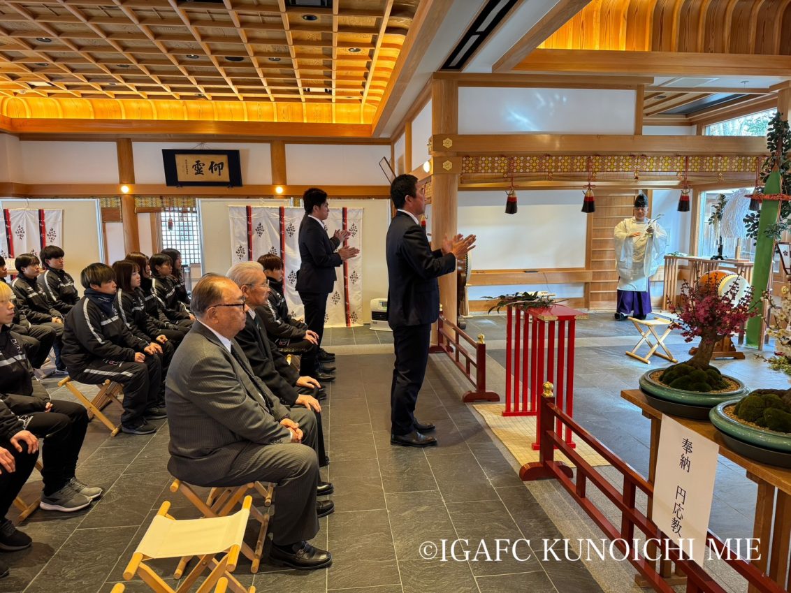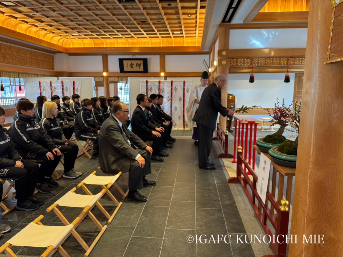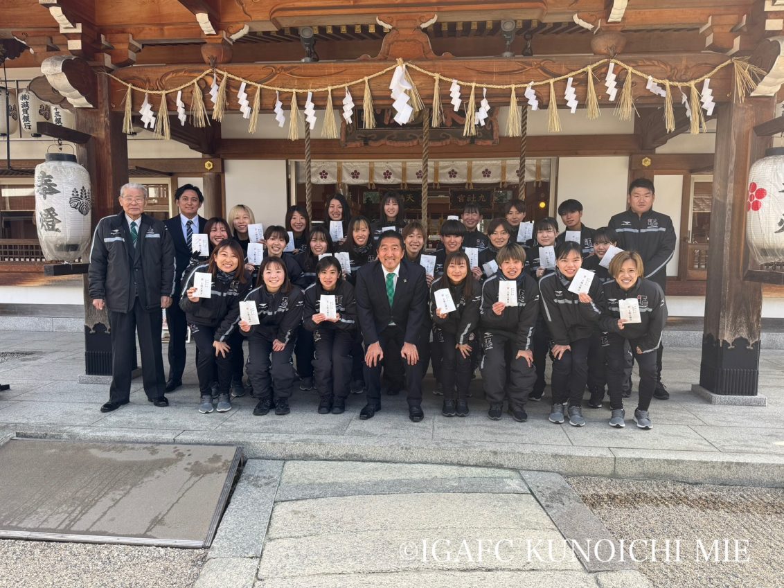 伊賀FCくノ一三重は、2026年1月31日(土)に2026シーズンの必勝を祈願するため伊賀市にある菅原神社(伊賀市上野東町)にて参拝をしました。
