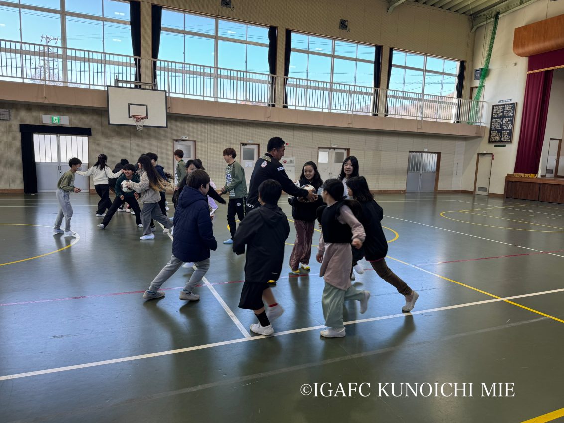 夢教室の後半では、レクリエーションを実施!「仲間と協力すること」というテーマに選手と協力したり対決したりと楽しいひと時を過ごしました。